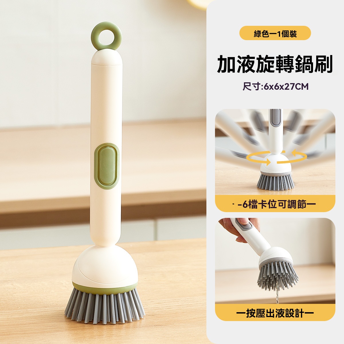 【旋轉加液長柄鍋刷】360°清潔無死角 按壓出液 不傷塗層不傷手 六檔卡位可調節 輕鬆應對不同清潔需求